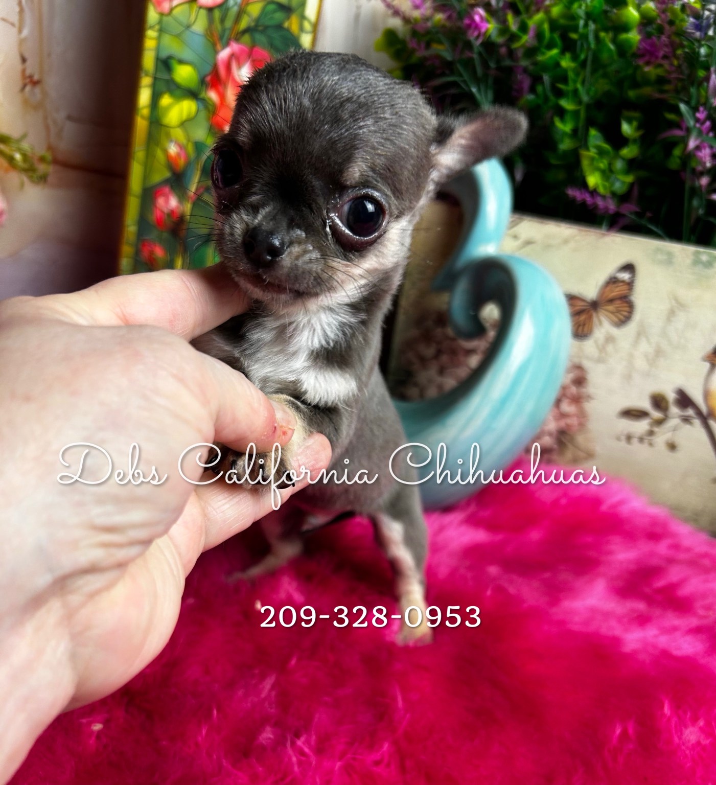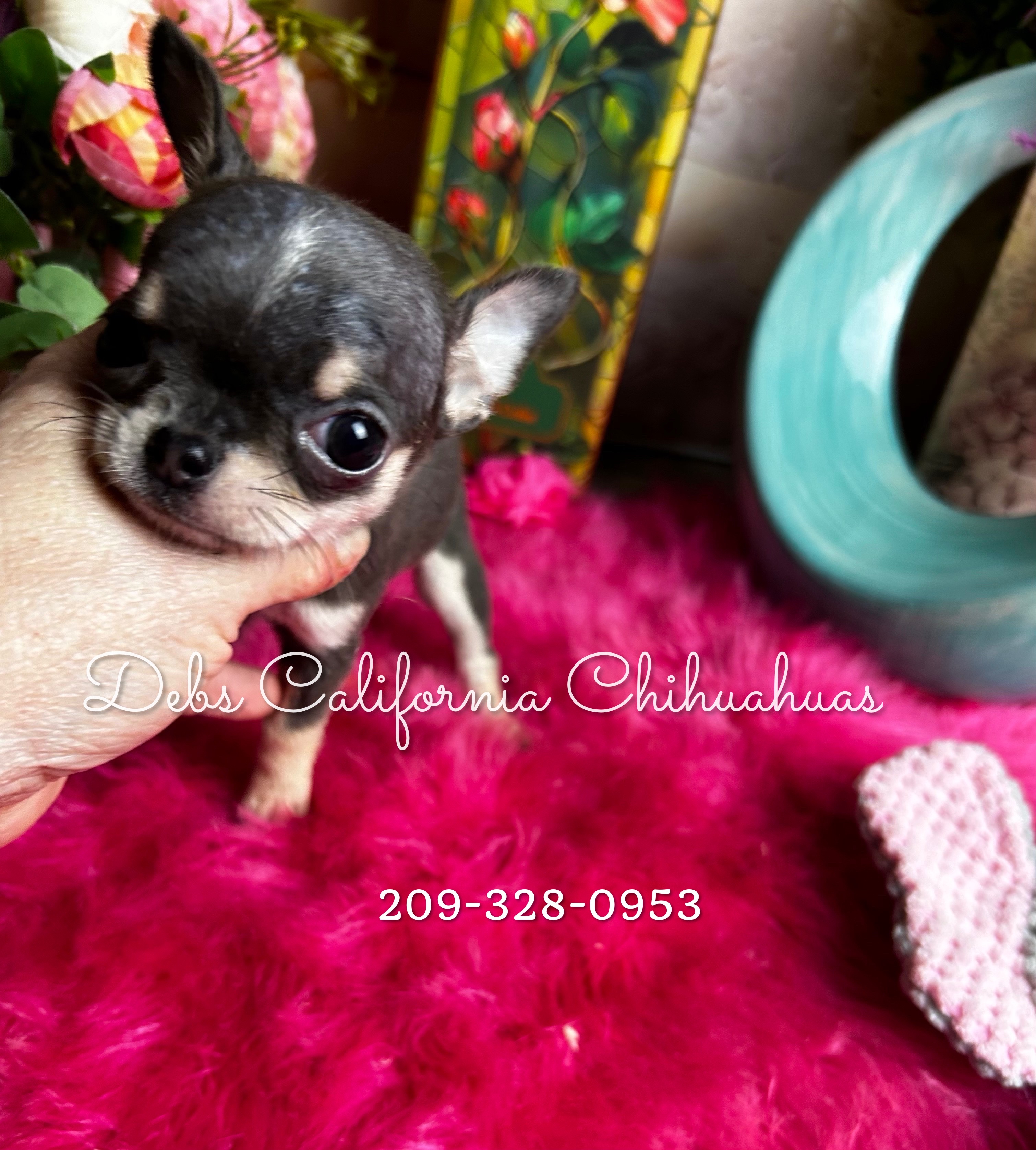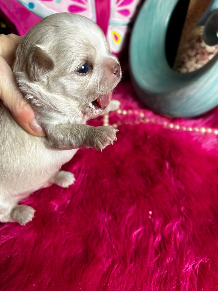 Blue Merle shorthair dollfaced little girl, big eyes, adorable, Charts 3.75 to 4 lbs grown. Puppy comes with 30 day free insurance, gift bag of goodies, pet reg, pedigree, shot record.